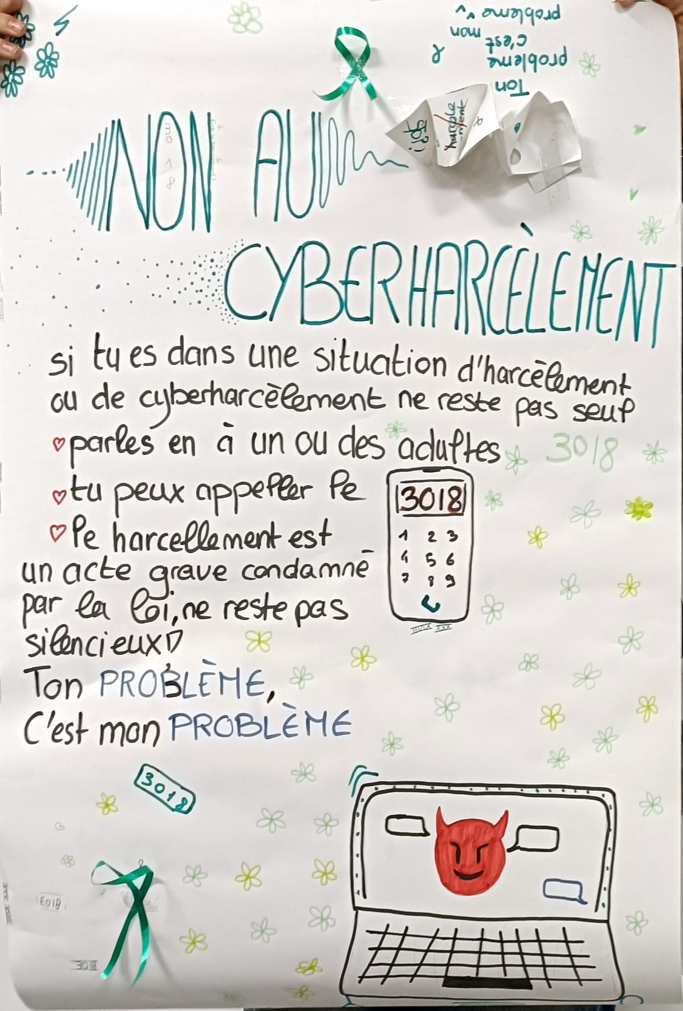 Un travail de réflexion qui a fait ressortir les différences entre harcèlement et cybercèlement, les règles de vivre ensemble, les référents à consulter en cas de difficulté. Un poster "Non au harcèlement" a cloturé la séance.