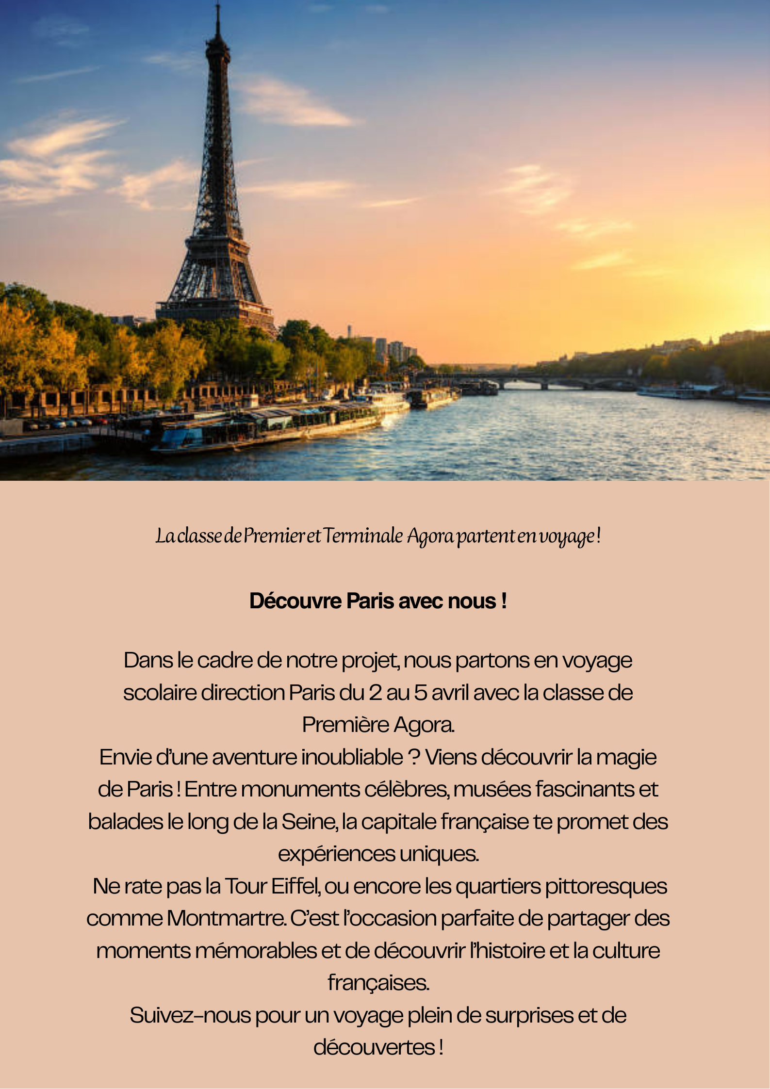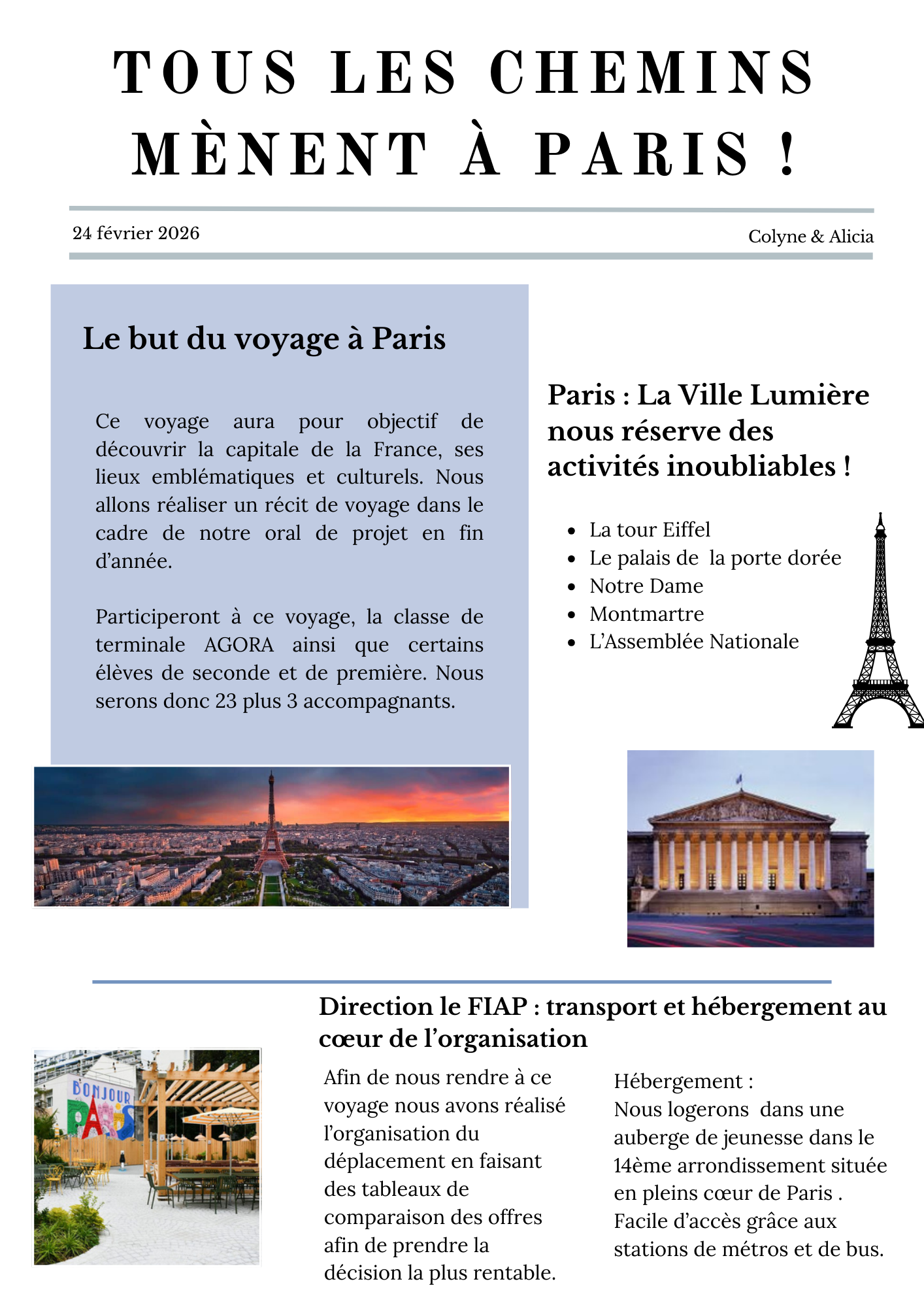 Les élèves qui préparent le bac professionnel AGORA ont participé à la construction d'un voyage culturel à Paris.